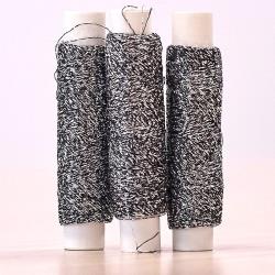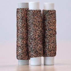 Il est plus facile à travailler en un seul fil ou bien mélangé avec un coton. On obtient alors un effet plus scintillant que vraiment métallique très intéressant.