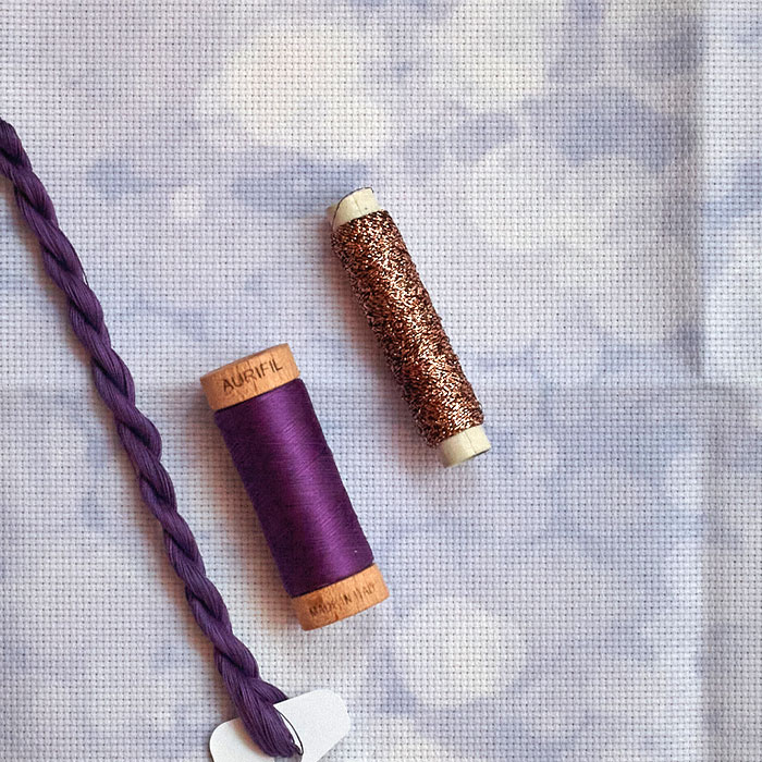 Une toile, deux couleurs assorties, les quantités et qualités prévues pour broder "Black Ginkgo" ou "Arabesques", extraits du livre sur Merveilleux Ginkgo.De quoi varier les plaisirs sur deux modèles qui mêlent blackwork et point de croix.