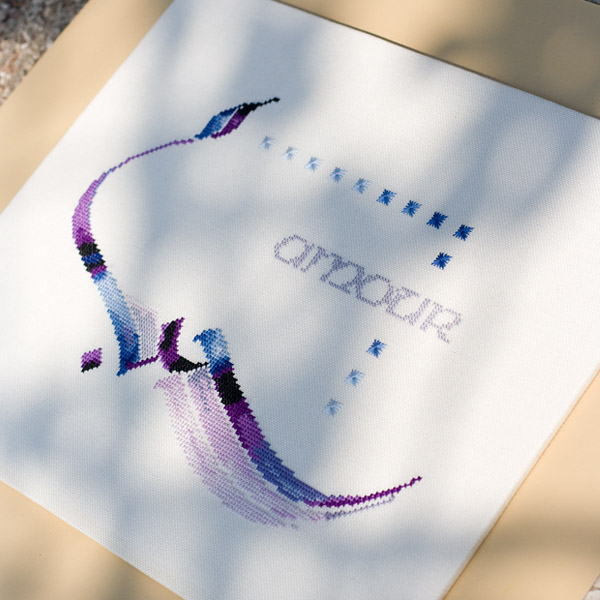Cette majestueuse calligraphie d'Ahmad Dari prend des allures d'oiseau imaginaire, avec son long cou et ses plumes colorées.