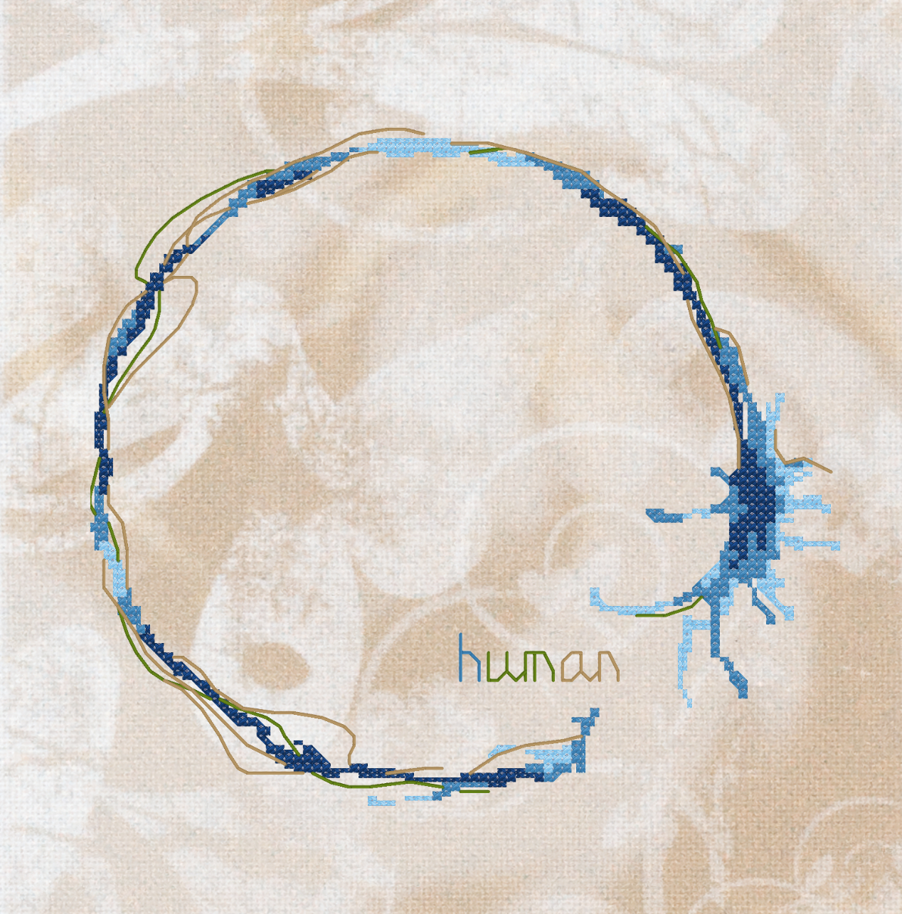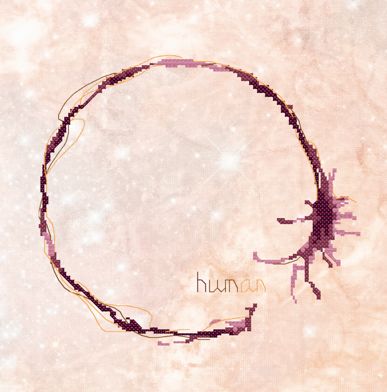 Ce modèle, offert en décembre 2024. Pour la dernière de cette série, j'ai choisi une langue exclusivement écrite et fort intriguante : l'heptapode, du film Premier Contact avec le premier mot : "Human".